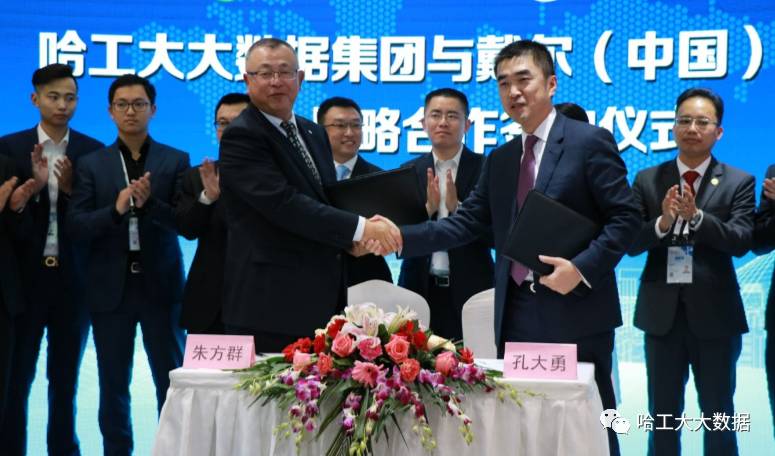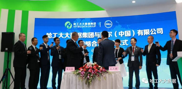 5月27日,2017中国国际大数据产业博览会现场,哈工大大数据集团与戴尔签署战略合作备忘录,双方将发挥各自优势,在云计算、大数据领域展开深入合作,旨在推进云计算、大数据等新兴产业快速发展。哈工大大数据集团高级副总裁朱方群、哈工大大数据集团副总裁兼市场部总经理叶良、哈工大大数据集团高级副总裁兼CTO赵志强、哈工大大数据集团高级副总裁朱剑锋、哈工大大数据集团市场部副总经理朱子云、哈工大大数据集团市场部销售总监李文河、哈工大大数据集团市场部销售总监雷俊博 ,戴尔大中华区副总裁孔大勇、戴尔解决方案总监陈骏出席签约仪式。