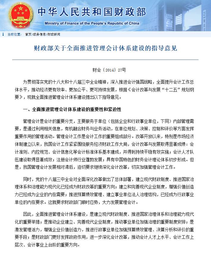 “未来不再需要单纯的核算型会计,全部会计都应是管理型会计。”随着国家财政部《财政部关于全面推进管理会计体系建设的指导意见》和《管理会计基本指引》的发布,企业财务人员不能只具备单纯的核算能力,更多的需要以核算为基础,具有管理意识、兼备核算能力和管理能力,为企业内部管理服务的会计人员,也就是我们所说的管理型会计。
