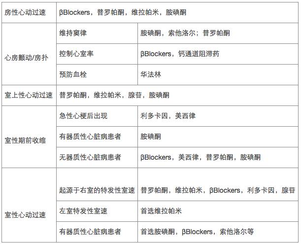 上文中对于多数临床常见的抗心律失常药物的适应证以及注意事项都已一一总结清楚,但是估计看官看到这里,有些会胸有成竹,也有些会一头雾水,所以为了更清楚明了,厚颜总结下临床相关疾病的抗心律失常药物的选择,希望对各位有一定的帮助。