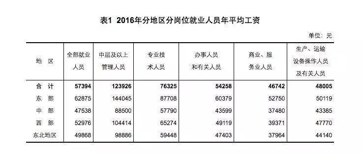 国家统计局对16个行业门类的约96万家企业法人单位调查显示,2016年,全部一套表平台被调查单位就业人员年平均工资为57394元,比2015年增长7.0%。