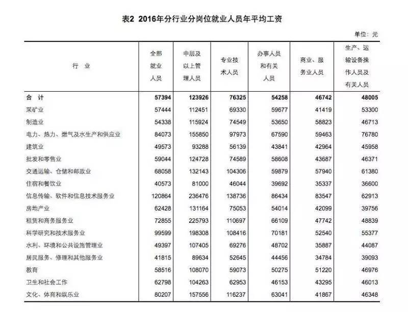 国家统计局27日发布消息,公布了2016年不同岗位的平均工资水平。数据显示,在经济运行缓中趋稳、稳中向好的背景下,全国城镇单位就业人员平均工资继续稳步增长。