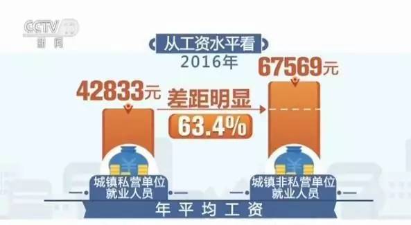从工资水平看,私营单位职工平均工资比非私营单位少24736元,约相当于其工资的63.4%,二者之间工资差距明显。