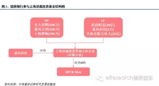 在2016年4月15日,招商银行以有限合伙人的身份参与暴风科技设立的上海浸鑫投资咨询合伙企业(有限合伙)的资金募集,该基金共募集资金52.03亿元,其中,招商银行出资28亿元。在该基金设立的投资决策委员会中,3名委员全部来自于普通合伙人,银行并未派出代表。在今年5月24日,上海浸鑫投资基金完成了对国际顶级体育媒体服务公司MP&Silva 65%股份的收购。此次交易标的估值超过10亿美金,是自2015年万达集团收购盈方以来规模最大的体育行业国际并购案。其基金运作方式便是现行银行参与并购基金的缩影。