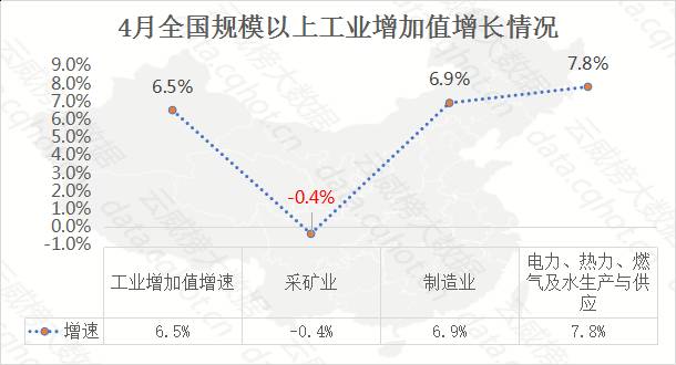 1. 国内采矿业发展概况4月,全国规模以上工业增加值同比增长6.5%,从三大门类看,采矿业同比呈负增长,相对来说,其发展态势有所下滑。