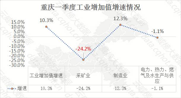 一季度,重庆工业总产值5856.71亿元,较上年同期增长10.3%。其中,采矿业同比下降24.2%,在三大门类中增速最慢。