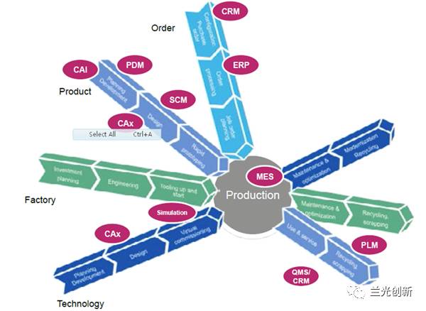 作为潜心研究十多年MES的兰光创新认为,除了在平台化、云计算、移动互联等计算机技术进行拓展应用以外,作为MES方案的提供者,我们更应该站在制造业使用者的角度,以中国制造2025为宗旨,以精益生产为主线,以两化深度融合为突破口,参考德国工业4.0等先进理念,结合企业实际情况,建设基于工业3.0,面向工业4.0、体现CPS特点的智能MES系统,构建“生产精益化+设备自动化+管理信息化+人员高效化”的“新四化”智能车间,为制造企业智能化转型升级奠定坚实的基础。