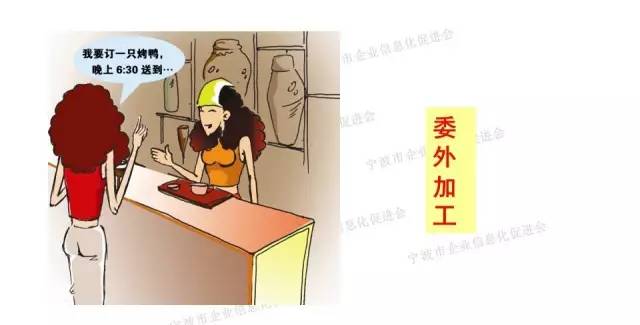 妻子发现拔鸭毛的夹子坏了,知道儿子放学早,然后通知儿子回来带个夹子来(生产异常,短信通知),没办法只能临时用手拔(生产作业更改),但很费时间,用微波炉自己做烤鸭可能就来不及(产能不足),于是决定在楼下的餐厅里买现成的(产品托外)。如果忙不过来请邻居帮忙,共同完成工作(生产计划临时调整为委外)。