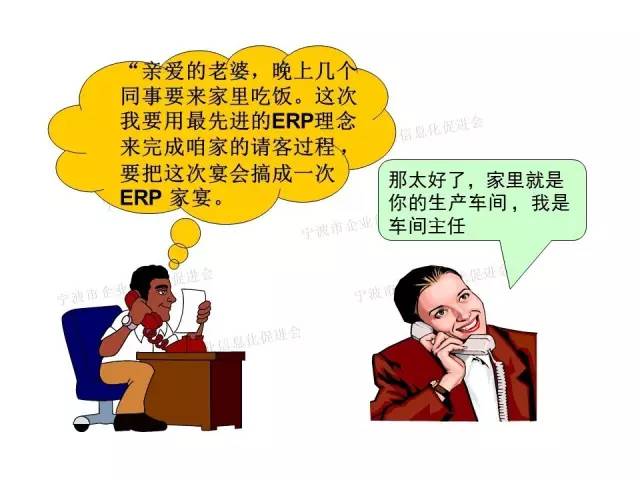 ERP: 一天中午,丈夫在外给家里打电话:“亲爱的老婆,晚上想带几个同事回家吃饭可以吗?”(订货意向)