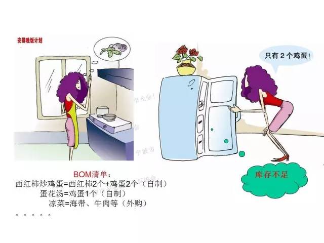 打开冰箱一看(仓库),只剩下2个鸡蛋(缺料/MRP)。