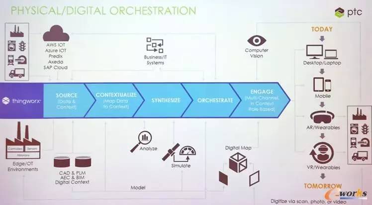 此次考察,我们再次前往PTC总部。PTC公司CEO Jim Heppelman先生、COO Craig Hayman等高管热情地接待了考察团。Jim介绍了对于工业物联网发展前景和趋势的看法。多年来,PTC提供数字化设计工具和平台的基础上,致力于实现数字化产品与实物产品的虚实融合。正因为如此,PTC不仅建立了Thingworx物联网应用平台,还打通了传感器数据采集、数据分析和增强现实技术,建立了完整的工业物联网应用解决方案。
