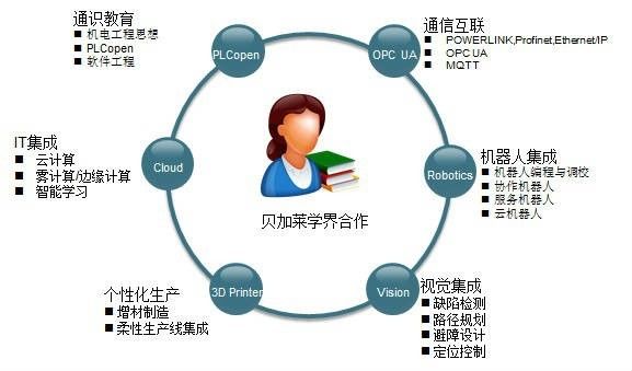图5是贝加莱的学界联盟对于人才培养的能力分析与规划,包括如何全局的推动智能制造的人才培养,与众多大学、自动化教学指导委员会、教育部持续的开展着人才计划,培养智能制造工程人才。