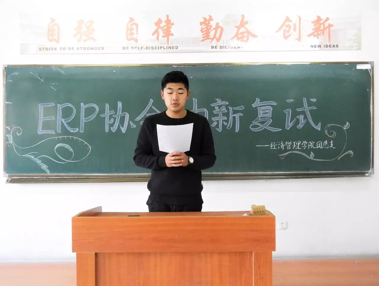 经济管理学院ERP协会在9月25日下午五点在教学楼b302教室迎来了又一轮复试,复试内容是关于ERP协会主要比赛项目的基础知识考核以及同学们的勇气和信心。本次复试的考官是ERP协会学术会长赵倩,执行会长武艳雪,ERP协会副会长辛雪威和ERP协会会长助理张出锐。