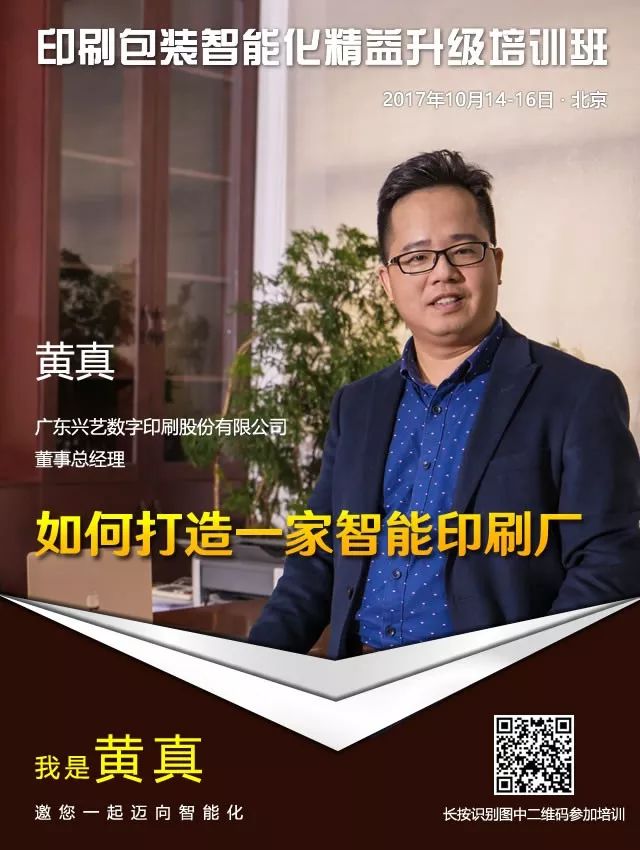 2017年10月,一年一度的中国印刷电子商务年会迭代升级,首创“印刷智能化精益升级培训班”,跟印刷包装企业一起,率先把握“智能化”这一机会点,着眼未来,赢在当下。