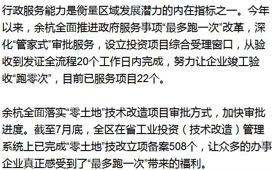 余杭对投资项目”一窗受理、集成服务“