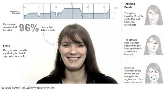 Affectiva公司的核心技术是情绪识别系统,通过人们的表情来分析判断出人的情绪是喜悦、厌恶还是困惑等, Affectiva搜集的数据越多则它能识别的表情也就越多,例如可以发现对方是否在假笑等。