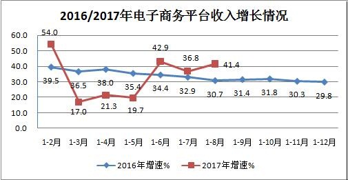 2017年1-8月,互联网和相关服务业①规模增速保持两位数,营业利润保持较高增速,网络购物和网络交易平台保持活跃。