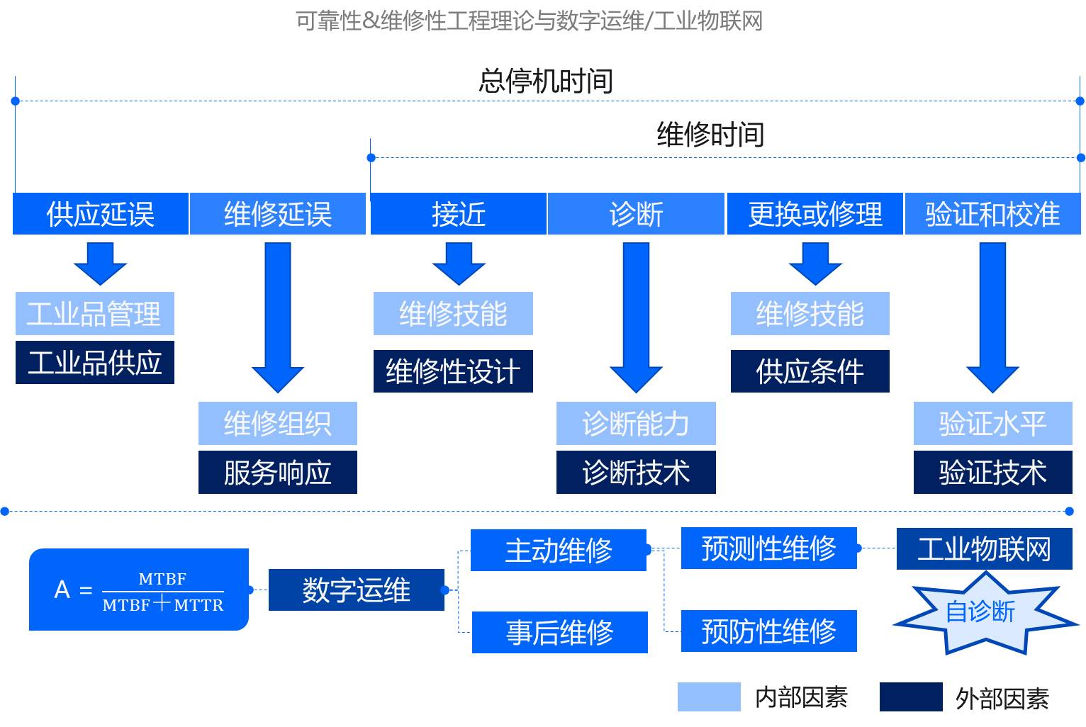 在离散作业线/流水作业线实施MES制造执行系统管控条件下,或流程作业线,其设备运维的目标被确定。由于系统的自由度被高度约束,系统的可靠性与维修性要求随之被体现出来,数字运维成为重要的课题。