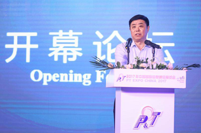 2017年9月27日,由工业和信息化部和中国贸促会共同主办的“2017年中国国际信息通信展览会”在国家会议中心开幕。工业和信息化部副部长陈肇雄出席开幕式并致辞,总工程师张峰主持开幕论坛,中国工程院院士余少华发表主旨演讲。