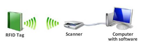 当带有RFID电子标签的物品经过读写器时,电子标签被读写器激活,并通过无线电波将标签中携带的信息传送到读写器以及计算机系统,完成信息的自动采集工作,计算机应用系统则根据需要进行相应的信息控制和处理工作。