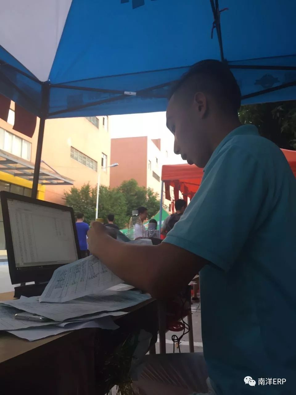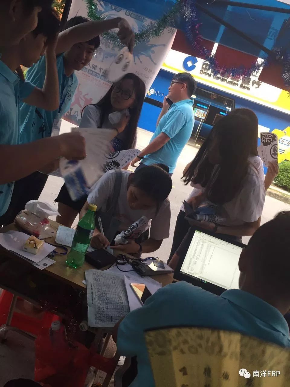 我们的师兄还在现场贴心地给前来报名的小师妹扇风,完全不受南洋炎热的天气影响!