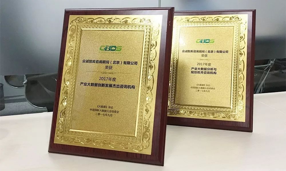 2017年9月26日,由国家工业和信息化部指导、人民邮电出版社主办的2017中国国际大数据大会上,为表彰众诚智库多年以来对我国大数据产业以及利用自主研发的大数据分析平台对我国咨询行业做出的杰出贡献,特向众诚智库颁发“产业大数据创新发展杰出咨询机构”、“产业大数据分析与规划优秀咨询机构”两项殊荣,众诚智库高层并与会代表围绕大数据、区块链、数字经济等热点话题,展开了广泛而深入的交流。