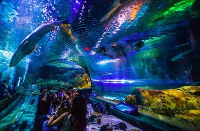 在浪漫唯美的关岛,一定也有一个地方用餐是浪漫无比的,那就是海底世界餐厅。在世界上最长的海底隧道用餐,整个空间是蓝紫色格调,斑斓得梦幻。在海底世界享用晚餐,还能获得3天海底世界入场券哦~