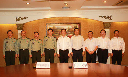 签约前,军事科学院副院长皮明勇少将一行与我校党委书记屈哨兵、校长魏明海及相关职能部门负责人进行了座谈,双方就军科院、广州大学的建设发展情况分别作了介绍,并就拟开展合作的重点领域和项目进行了初步对接。