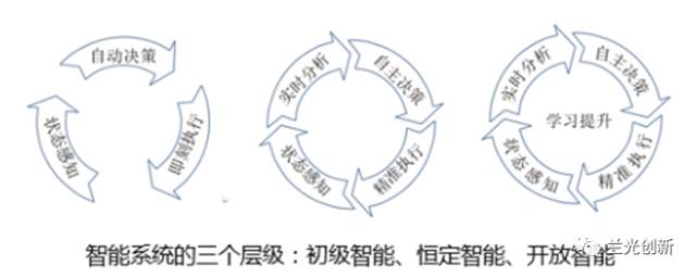 上面纵向的三个智能等级是依据笔者共同编著的《三体智能革命》一书中的定义,请见下图。