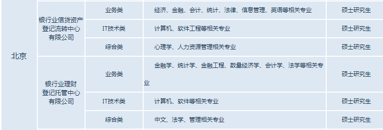 职位描述:从事银行信息系统建设、各类业务系统的开发与管理、互联网金融等工作。