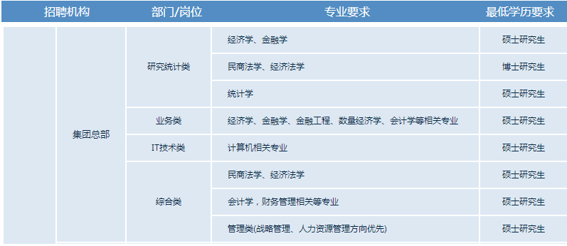 岗位要求:全日制普通高等院校2018年应届毕业生,硕士研究生及以上学历,会计、财务管理、审计、统计学、数学、工商管理、新闻学、传媒学、法律等相关专业。