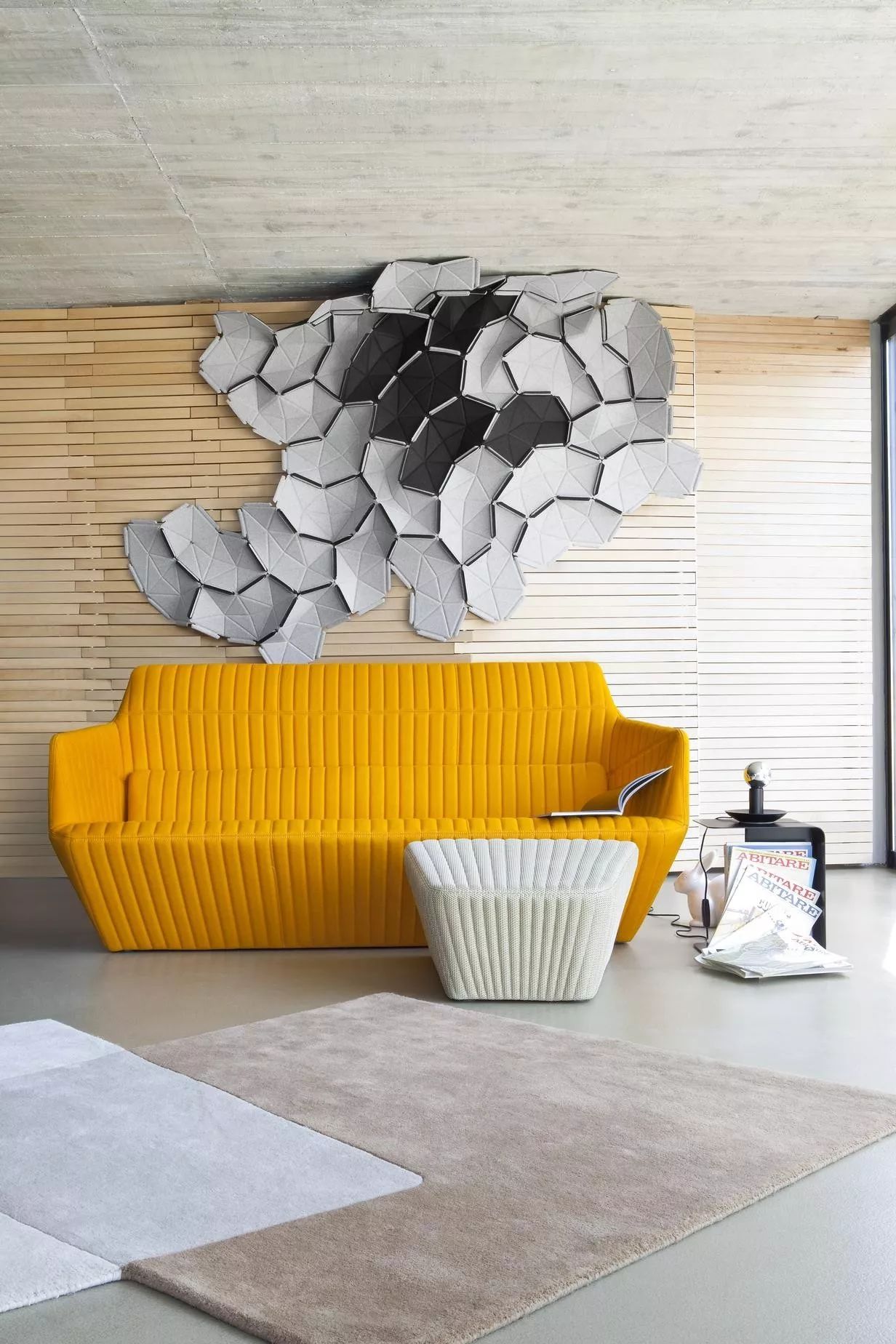CLOUDS,是一个充满创新的、丰富多彩的装饰图案。每组可以选择2种不同的颜色织物,将他们用松紧带连接起来。挂在墙上或者摆在地上,都是一道亮眼的风景。从远处看,为有意想不到的三维效果。这组挂饰,同样来自Ronan and Erwan Bouroullec设计师兄弟的杰作。