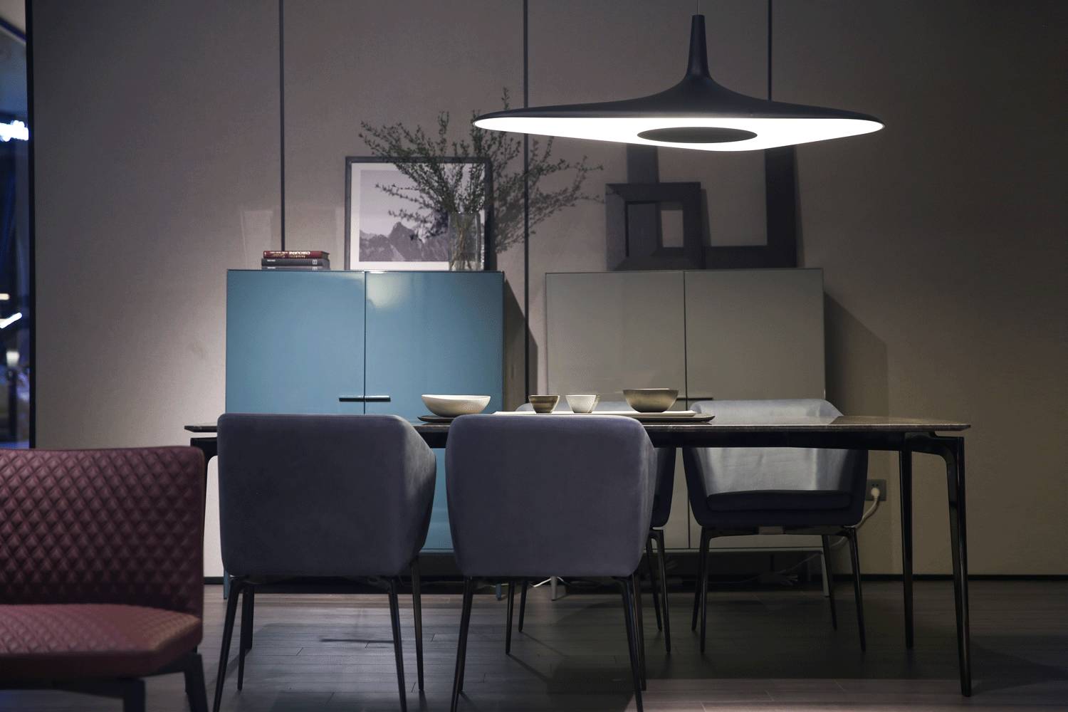 如卧云端的纤薄桌面,打破传统餐台的厚重感,行云流水的视觉冲击,带来与众不同的感官享,凸显创意之美。