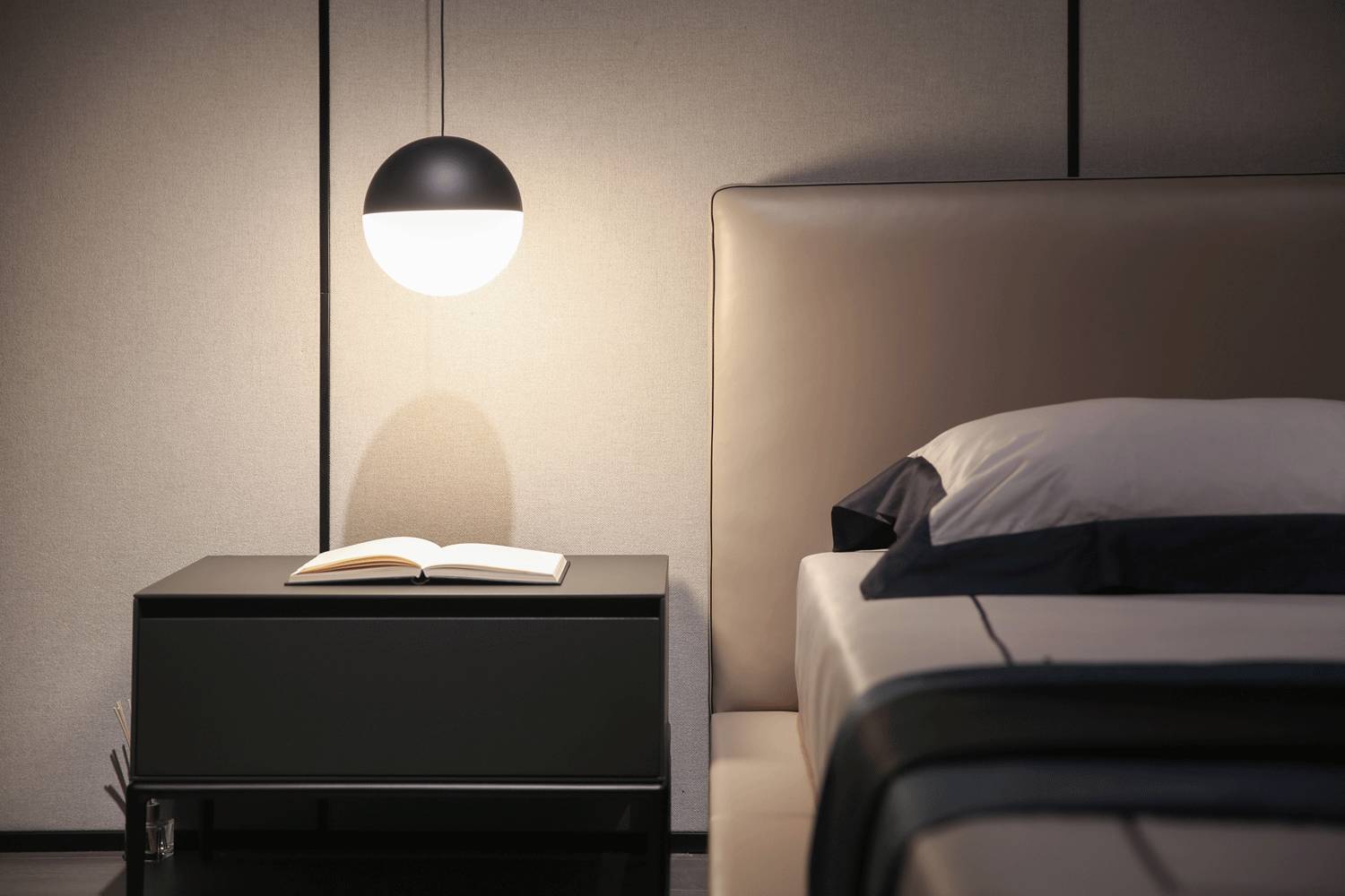 线条与几何矩形,勾画出如现代工业建筑的大气。CHIC CASA 专属调制金属灰漆面,静观呈现神秘的哑黑色调,轻触又可感知金属质感,灯光下折射出海贝灰的光芒。