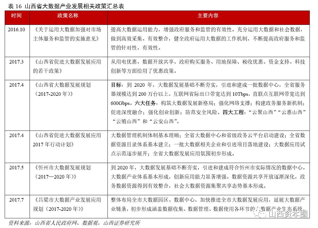 山西省大数据产业政策梳理
