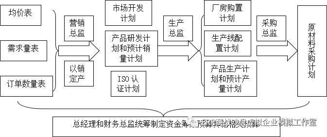 那剩下的资源配置是如何决策的呢?三表!(三表不是财务报表,是市场预测表,包括均价表、需求量表和订单数量表)先分析三表制定销售计划,如下一年计划销售10个p1(三表分析我们后面详解,希望大家关注),生产主管就以此为生产目标,配置厂房和生产线资源进而完成生产目标(如何配置选择,我们在后面详解),采购主管根据生产产品数量,配置原材料资源,然后根据总体操作流程,进行产品研发投入、费用投入、市场开发和认证投入,最后得出现金余额。