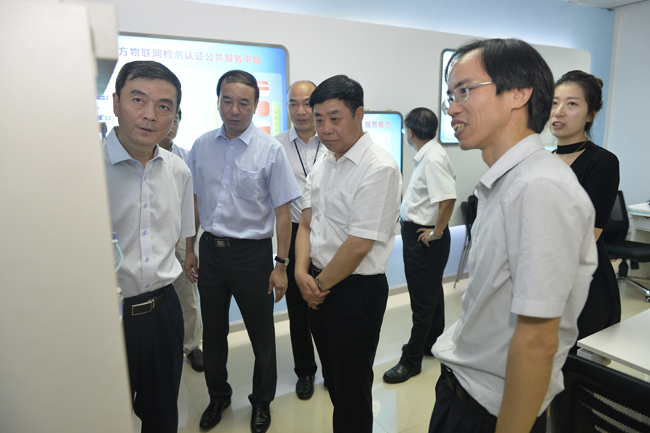 张峰考察了国家级工业设计中心终评入围的中国赛宝实验室工业产品质量与可靠性设计中心,以及国家物联网公共服务平台(南方平台)建设发展情况,实地考察了电子五所工程中心、质检中心、重点实验室、数据中心、认证中心。