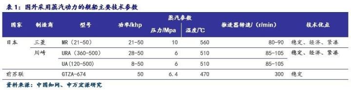 2)蒸汽动力单机功率大,现今主要应用于大型航母及部分水面舰艇