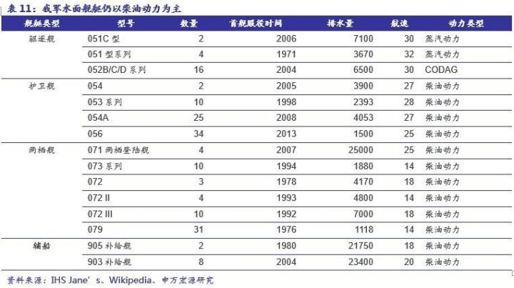 2.2.2国内水面舰艇仍以柴油动力为主,仅新舰的少数舰艇使用燃气动力