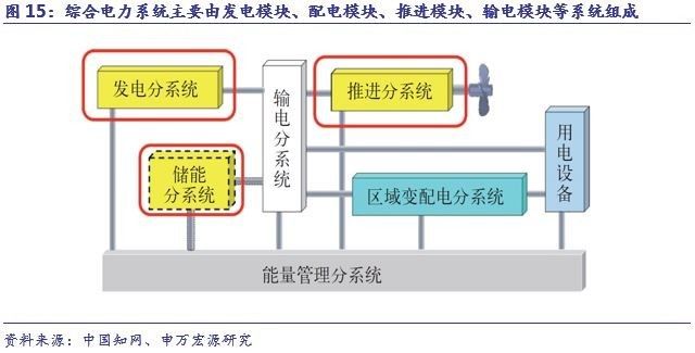 综合电力系统优势明显,符合未来战舰配备高能武器系统的需求,受到最新型舰艇的追捧。未来的综合电力系统(IPS)的主要优势在于推进用电与船上用电并网,船上日常用电和任务系统的用电负荷可大幅增加,从而满足了未来战舰上安装先进传感器和高能武器系统的需要;未来的综合电力系统的优势还包括可减少原动机的数量、提升原动机的效率、提升推进器的效率、提高总布置的灵活性等,受到了当下新型海军舰艇的追捧,各国目前都在陆续推进综合电力系统研发,美国最新型的DDG-1000驱逐舰即采用综合电力系统。