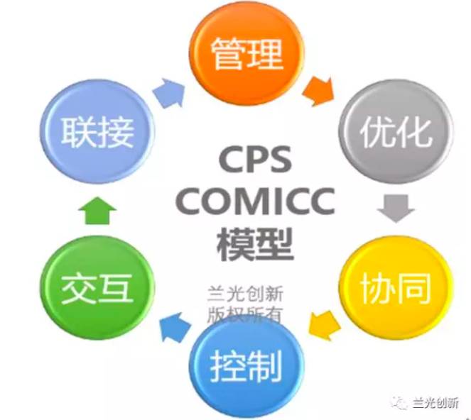 我们通过进一步研究可以发现,在CPS视角中,英达思迅I-MES中的6个动词分别是联接、管理、控制、协同、优化、交互,如果用英文表达,可分别使用Connect(联接,包含通讯、采集等技术内容,也包含物与物的联接,如物联网,人与人的联接,互联网等,都属于联接范畴),Manage(管理),Optimize(优化),Collaborate(协同),Control(控制),Interact(交互),首字母可组合为COMICC,笔者称之为CPS COMICC模型。CPS传统的3C模型(Communication(通讯)、Computing(计算)、Control(控制))总体上停留在技术层面,没有体现联接、管理、优化、人机友好等层面的含义,相对3C模型,笔者认为COMICC模型内容更丰富,应用场景更清晰,对制造业有更强的落地指导性。