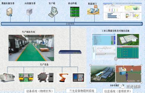通过实施设备物联网系统,将车间中的机床、机器人、AGV、热处理设备等数字化设备实现互联互通,包括加工程序的网络化传输、设备状态的远程自动采集、工业大数据智能化分析与可视化展现,生产设备由信息化孤岛变为一个个信息化节点,物理设备融入到赛博空间,构成了一个设备级的CPS系统,这是智能MES的物理基础。