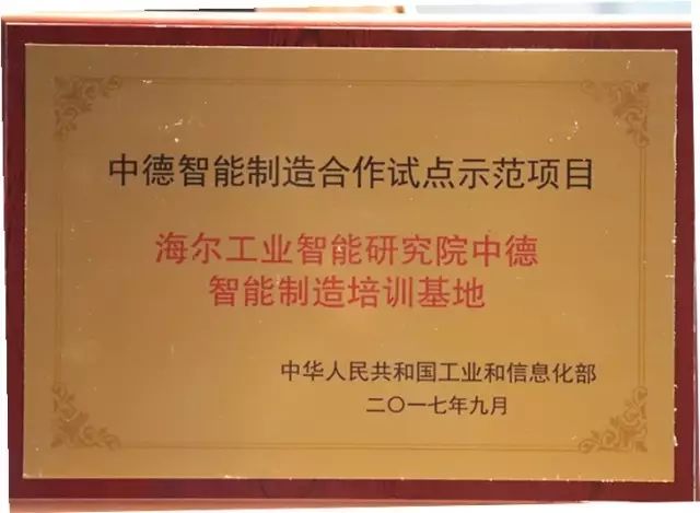 中德联合集团与海尔集团合资成立的海尔工业智能研究院获评中德智能制造合作试点示范项目。