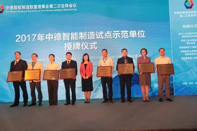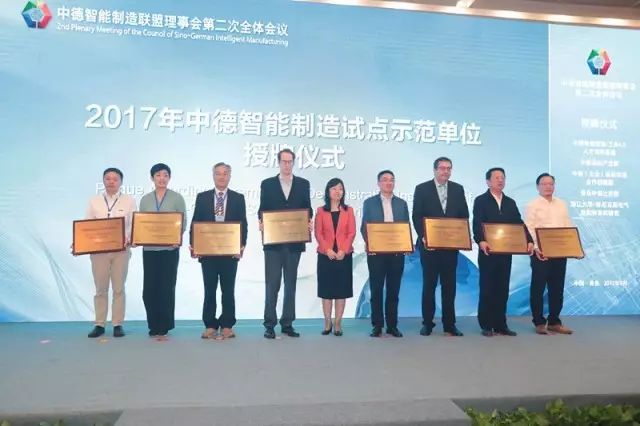 会上,工信部发布了2017年中德智能制造合作试点示范项目名单,中德生态园以及中德联合集团与海尔集团合资成立的海尔工业智能研究院获评全国智能制造示范单位。