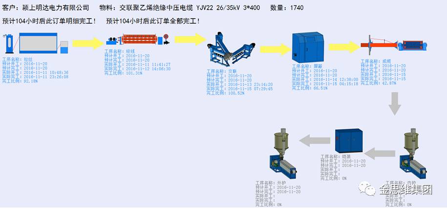 金思维MES利用条码技术,从材料、半成品到成品对不同状态下的物料进行条码管理,通过扫码识别有效链接产品加工流转全过程,对设备运行参数进行实时采集,将工艺检测记录归集至具体订单,来进行防错、监控、实时分析和追踪,实现订单可视化跟踪和生产制造过程完整重现: