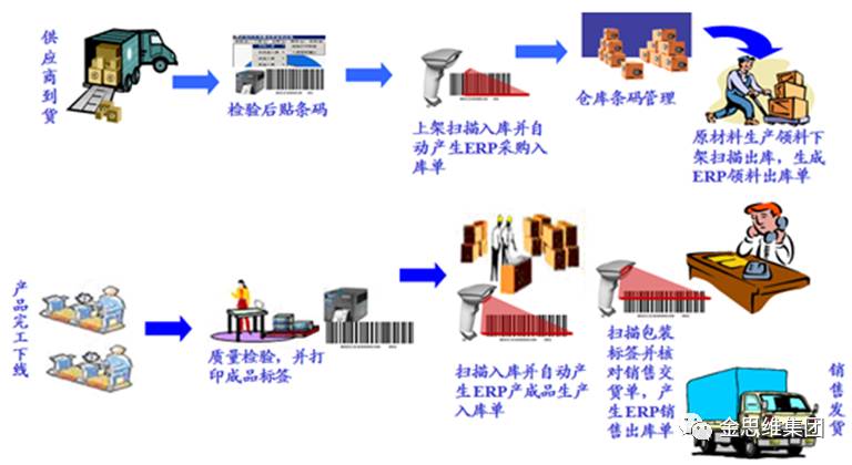 对物料进行条码化标记,生产过程领料及产出进行条码扫描记录。