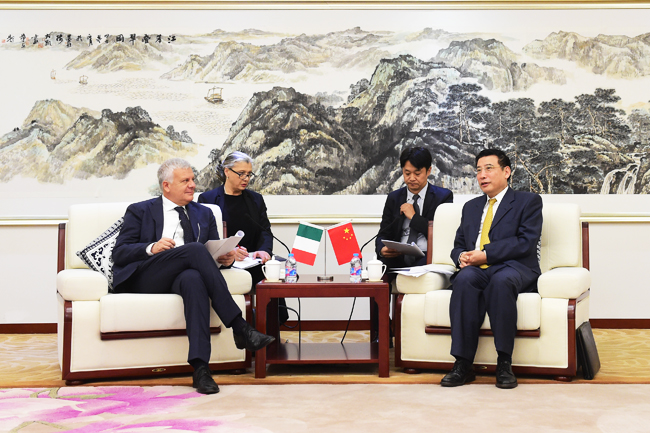 工业和信息化部节能与综合利用司司长高云虎、国际合作司副司长程建军以及意大利驻华大使谢国谊等陪同会见。
