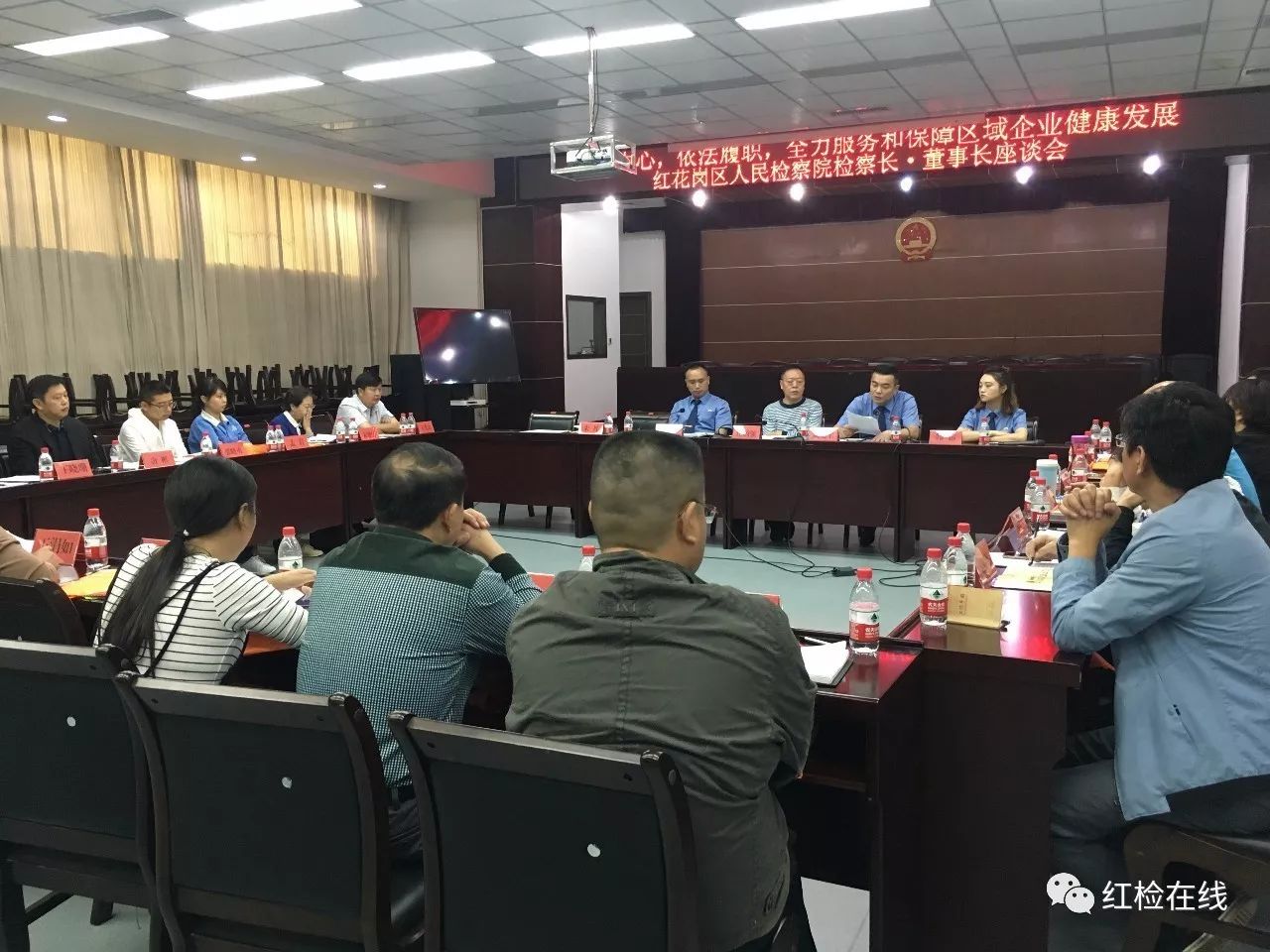 9月29日,红花岗区人民检察院召开主题为“围绕中心,依法履职,全力服务和保障区域企业健康发展”的“检察长、董事长”座谈会,21家国有企业董事长参加会议,红花岗区人民检察院党组书记、检察长任炳强,党组成员、副检察长龚光军,党组成员、副检察长宋朝春以及预防科全体干警出席座谈会。
