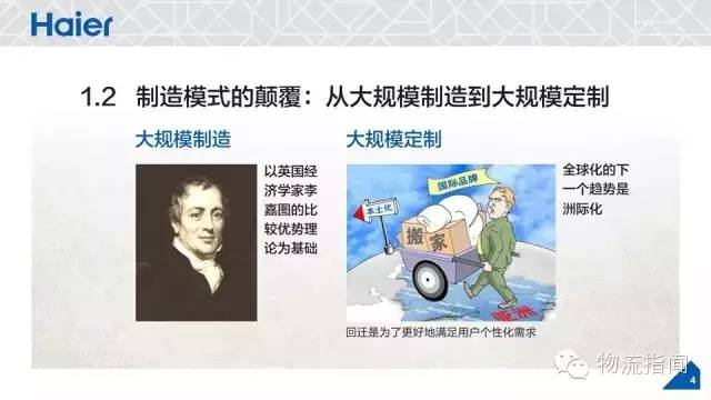 张瑞敏认为,英国经济学家李嘉图的比较优势理论,是大规模制造的灵魂。也就是说,所有的国家和企业,不是具有所有的优势,你需要找准自己的优势,然后把这个优势发挥出来。比如改革开放初期,中国的优势就是低成本,所以我们成为了世界的工厂。