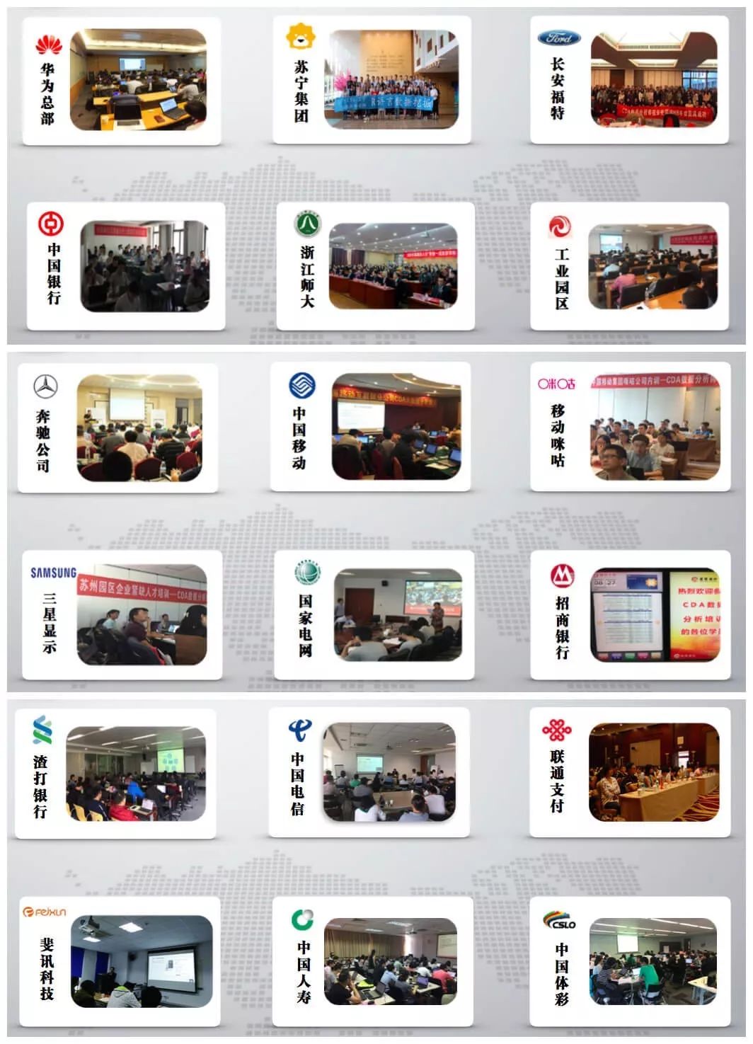 截止到目前CDA已经先后为金融、互联网、零售、高校、制造业、大型国企等。