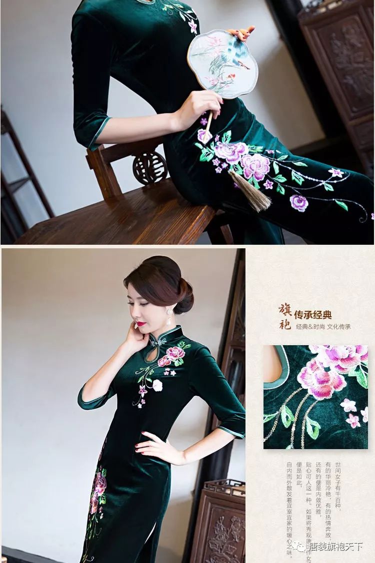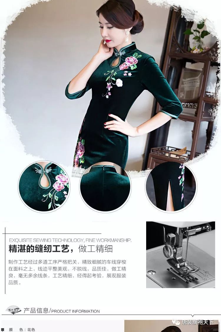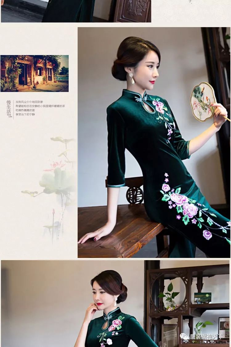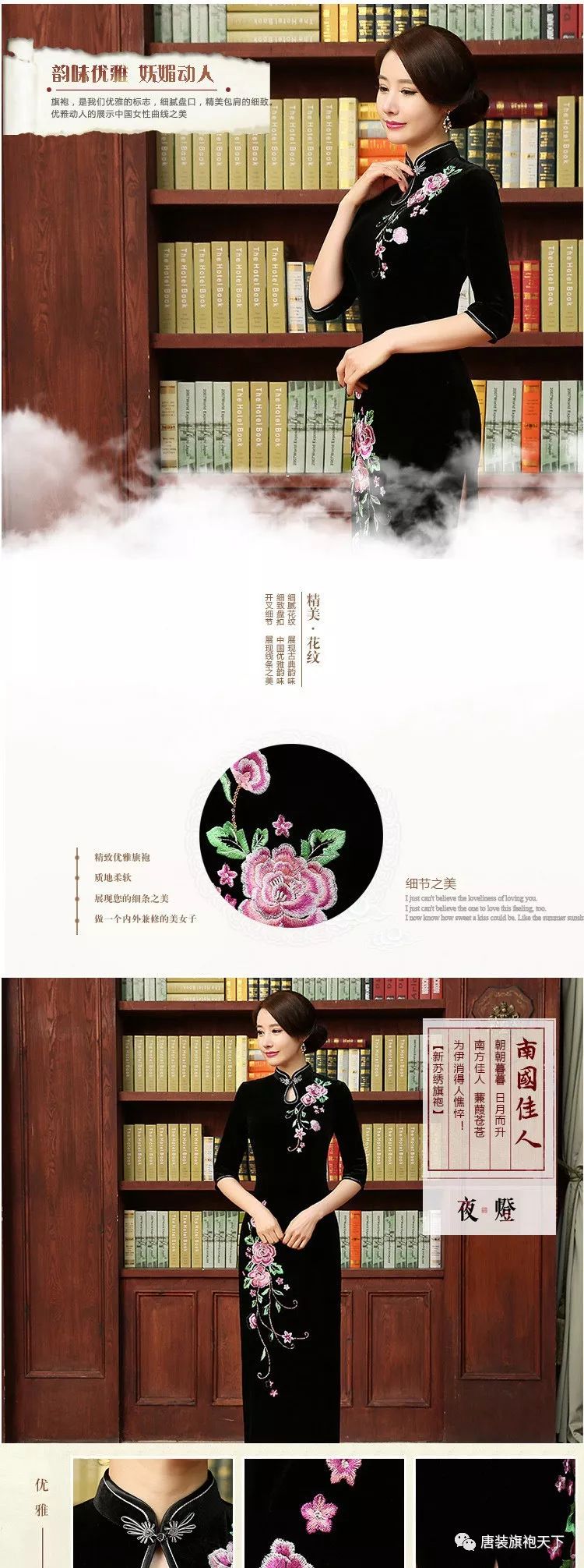 MES808复古秋季新款精致绣花滴水立领丝绒旗袍裙